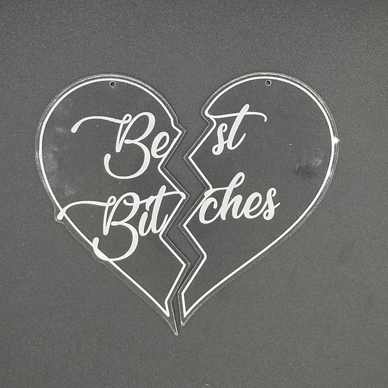 One half for you and one half for your best friend. Laser engraved 4 inch tall acrylic ornament. Each half is about 2.5 inches wide and together measure just over 4 inches.
