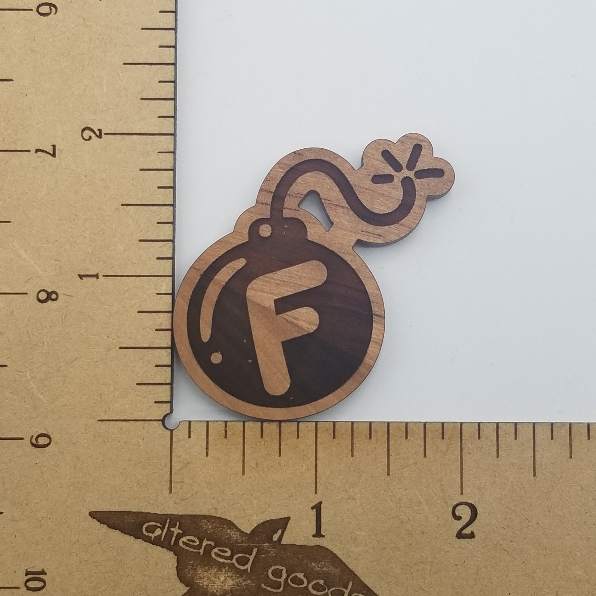 Laser engraved 2 inch cherry hardwood magnet with our logo on the back.